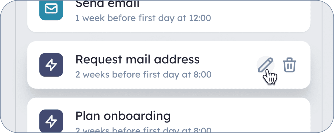 We understand that onboarding is all about personalization, and our tool is designed to support that. Within Onstep you can define variables to ensure personalized communication tailored to each new hire.